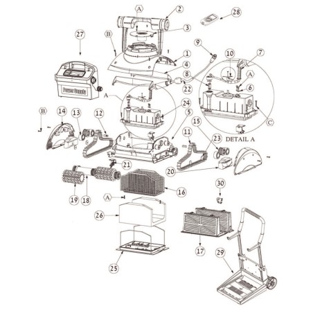 Ricambi per robot piscina Dolphin Master M5. Scegli il ricambio di cui hai bisogno fra quelli disponibili oppure scarica lo schema esploso e richiedi un preventivo per il pezzo che ti serve