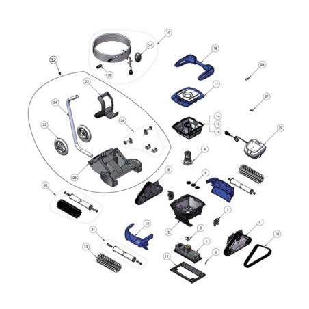 Ricambi per robot piscina Cyclonix. Scegli il ricambio di cui hai bisogno fra quelli disponibili oppure scarica lo schema esploso e richiedi un preventivo per il pezzo che ti serve