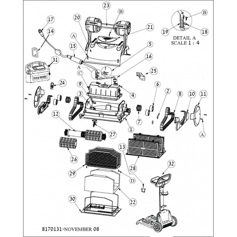 Schema esploso per robot piscina Dolphin Thunder 30