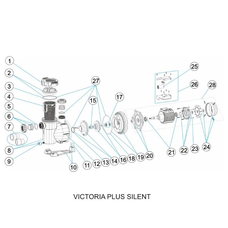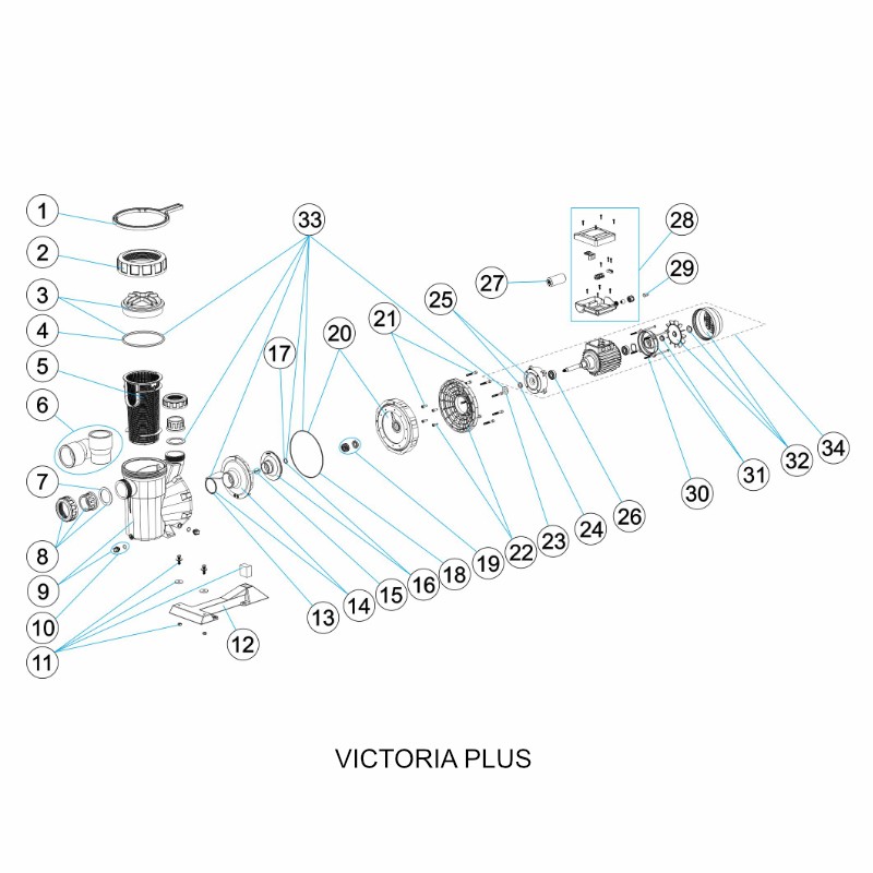 Schema esploso parti di ricambio ppompa per piscine Astralpool modello Vicotria Plus e Victoria Plus silent