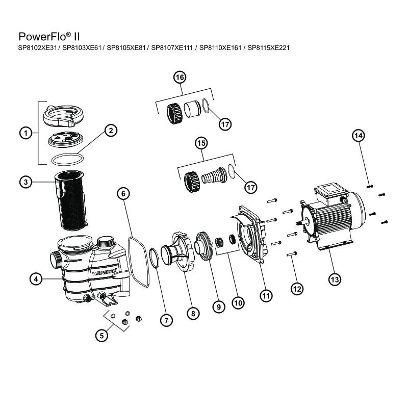 Schema esploso parti di ricambio pompa per piscine Hayward modello Power Flow II