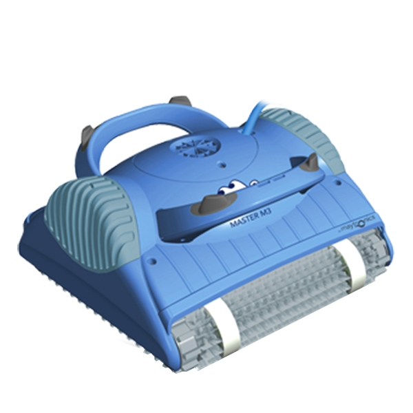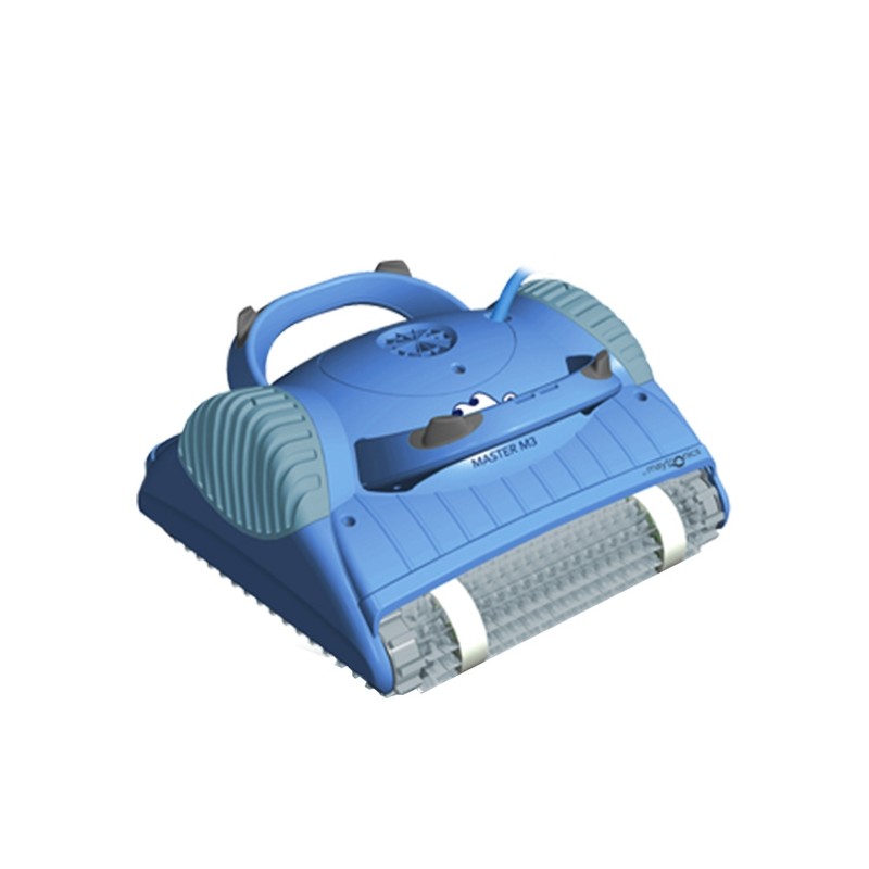 Dolphin Master M3, è il robot Maytronics per piscine di piccole dimensioni o fuori terra; si muove sul fondo della vasca modo autonomo, sarà sufficiente collegarlo alla rete elettrica e partirà automaticamente per il suo ciclo di pulizia. Trattiene lo sporco nel filtro a cartuccia lavabile e si arresta a fine del tempo di ciclo.